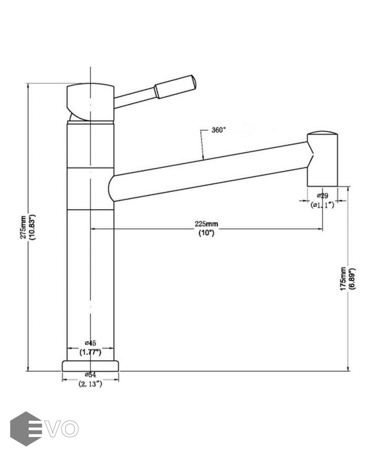 - Длина излива 225 мм