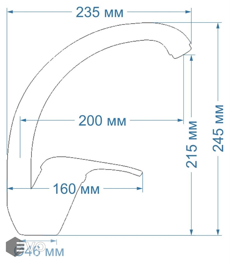 - Длина излива: 200 мм
