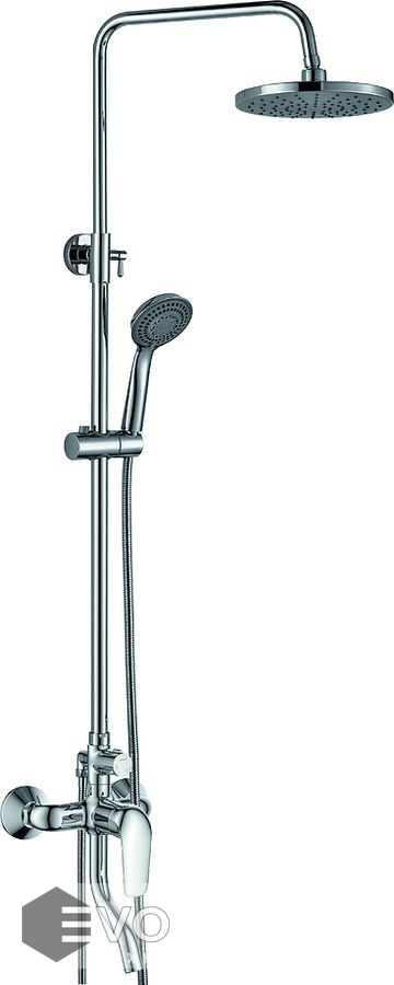 Комплектация: Душевая лейка. Тропический душ. Раздвижная душевая штанга. Поворотный держатель душевой лейки. Шланг. Смеситель. Переключатель с керамическими пластинами.