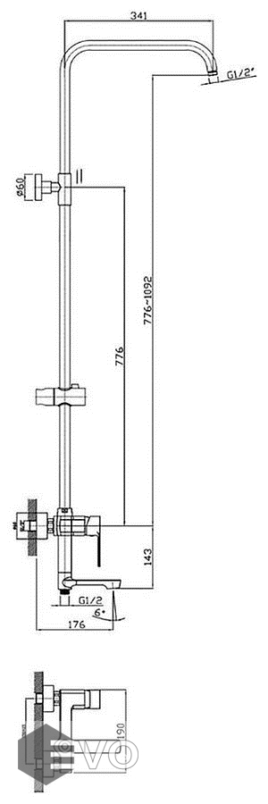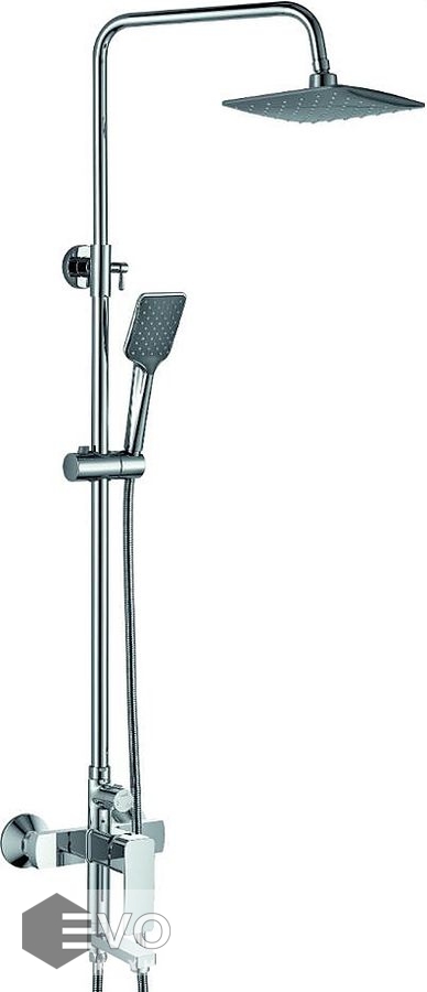 Комплектация: Душевая лейка, Тропический душ, Раздвижная душевая штанга, Поворотный держатель душевой лейки, Шланг, Смеситель, Переключатель с керамическими пластинами.