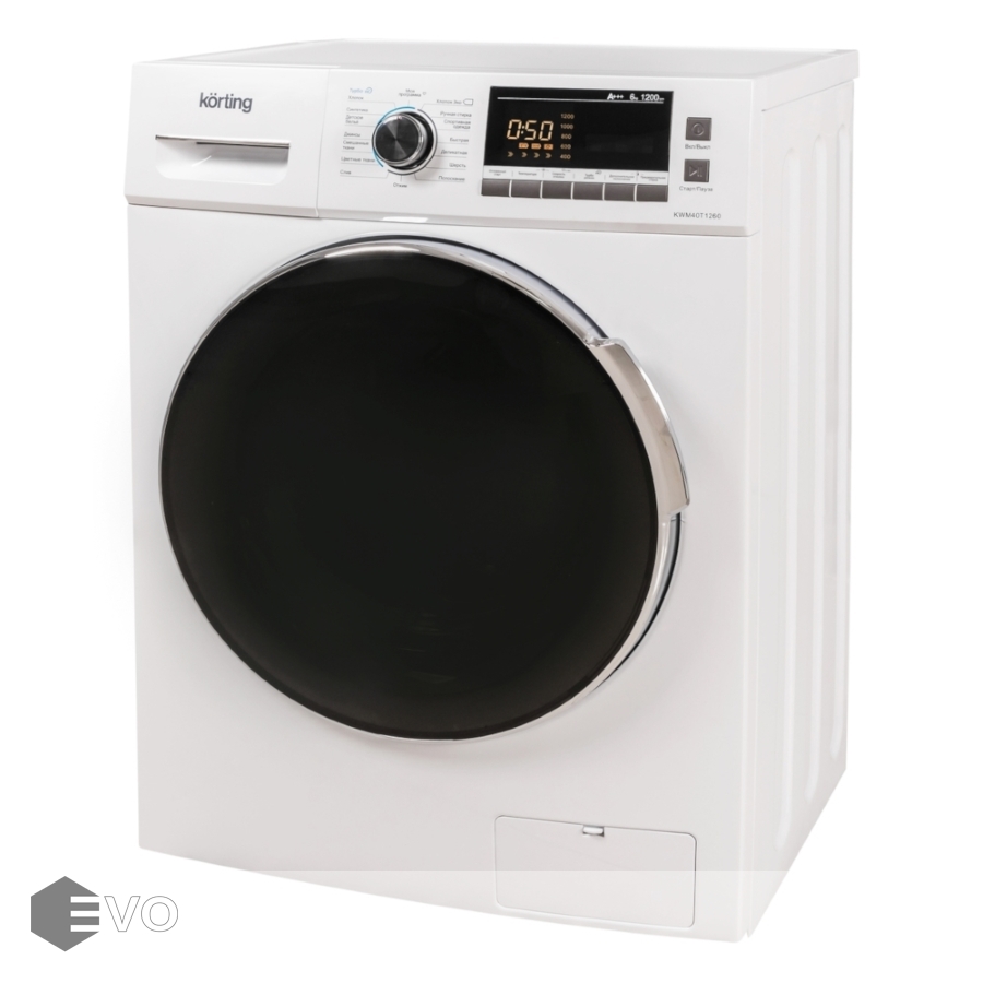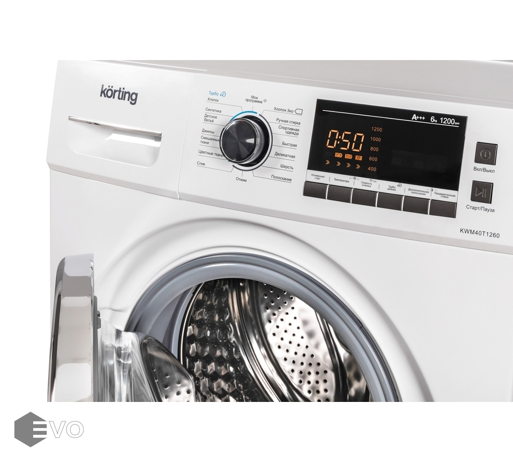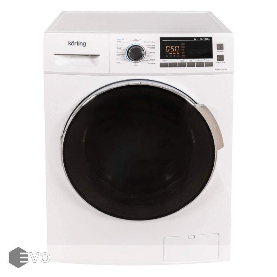 Стиральная машина Korting KWM 40 T 1260 — это отдельно стоящая узкая модель белого цвета с фронтальным типом загрузки. Барабан из нержавеющей стали вмещает в себя до 6 кг белья. Управление осуществляется при помощи поворотного переключателя, кнопок и дисплея. Всего насчитывается 16 программ стирки, среди которых «детские вещи», «цветные ткани» и опция «моя программа».