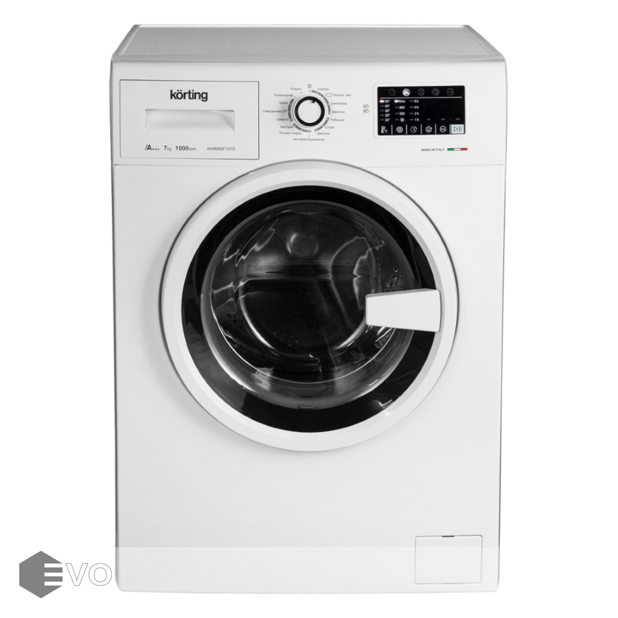 Стиральная машина Korting KWM 55F1070 — отдельностоящая модель с загрузкой 7 кг. Скорость отжима регулируется от 500 до 1000 оборотов, при необходимости опцию можно отключить. Прибор оснащен 15 программами, среди которых «Антибактериальная» и «Джинсы» с дополнительными циклами полоскания, «Шерсть» и «Ручная» со специальным алгоритмом вращения барабана.