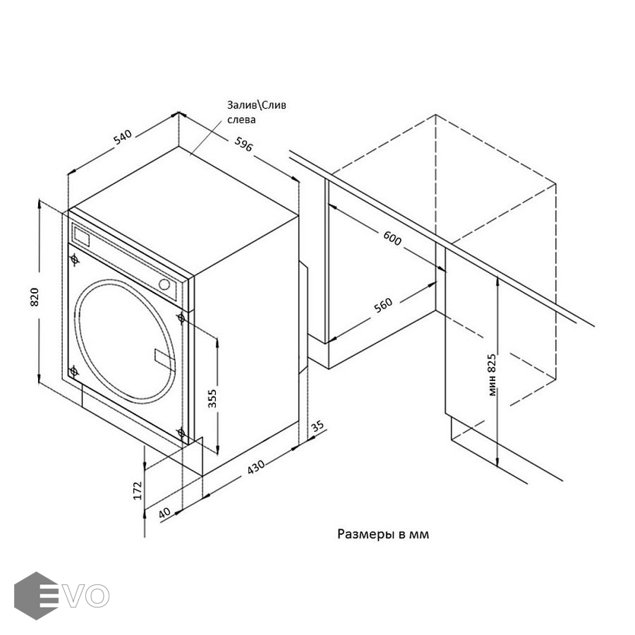 Размеры встраивания (ВхШхГ), мм: | 825х600х560 |
