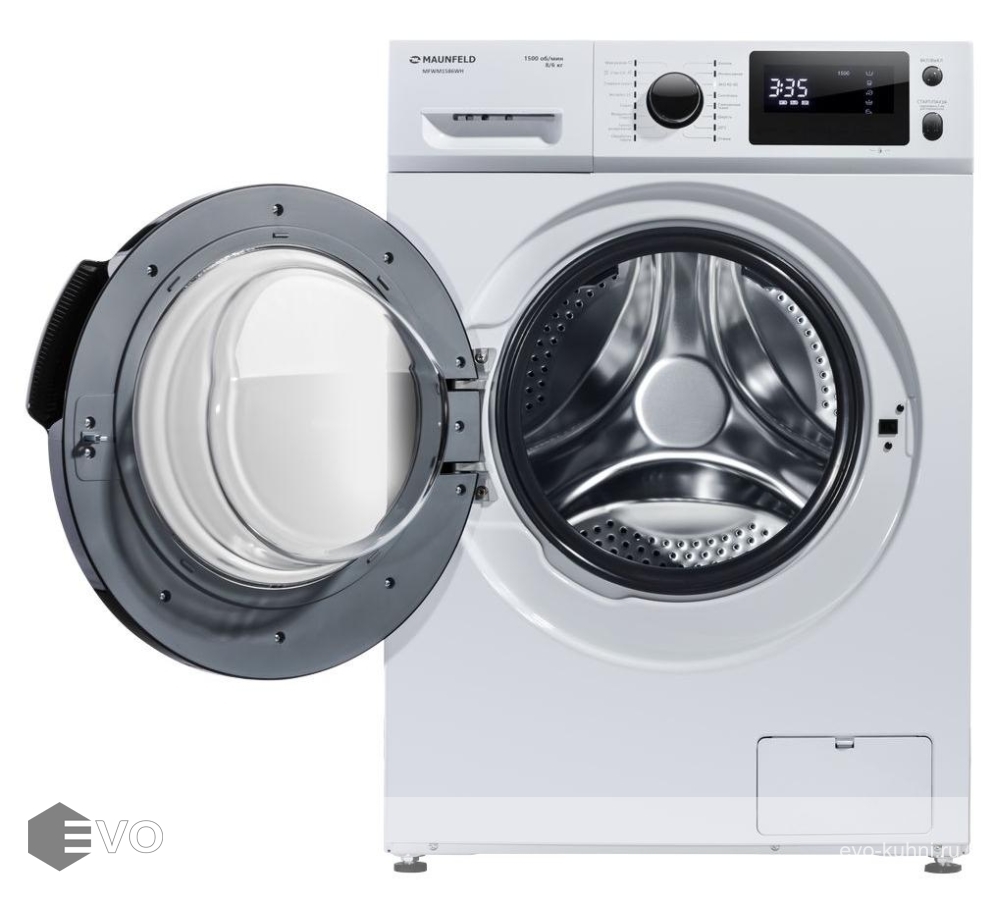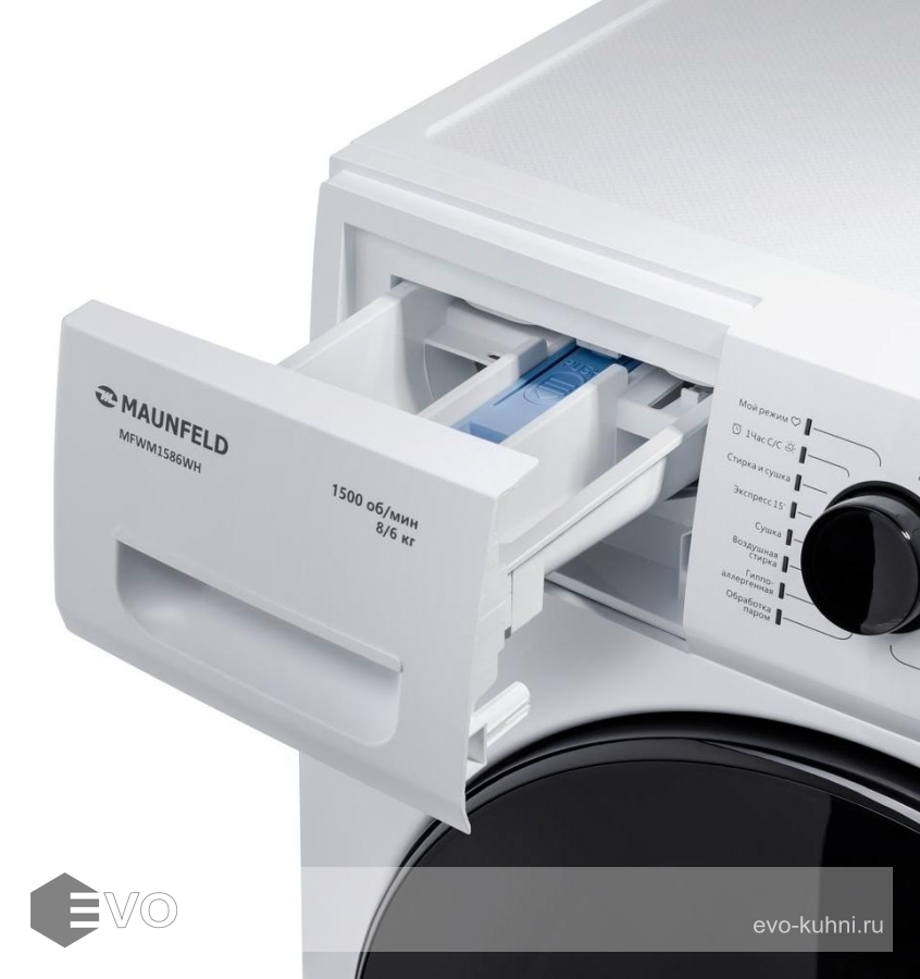 Стиральная машина MAUNFELD MFWM1586WH – отдельностоящая стиральная машина с инверторным мотором мощностью 1900 Вт. Белый цвет корпуса идеально сочетается с черным тонированным стеклом загрузочного люка и дисплея. Бак сделан из экокарбона, а барабан – из нержавеющей стали.