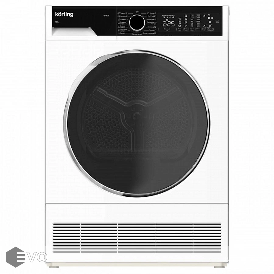 Сушильная машина Korting 60L97 с конденсационным типом сушки оснащена 15 режимами для различных типов тканей. Корпус модели выполнен в белом цвете, а люк и панель управления — в чёрном. Такой дизайн будет лаконично смотреться в любом интерьере.