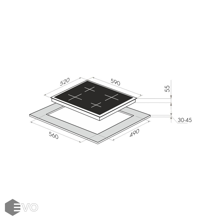 Размеры встраивания (ВхШхГ), мм: | 30х560х490 |