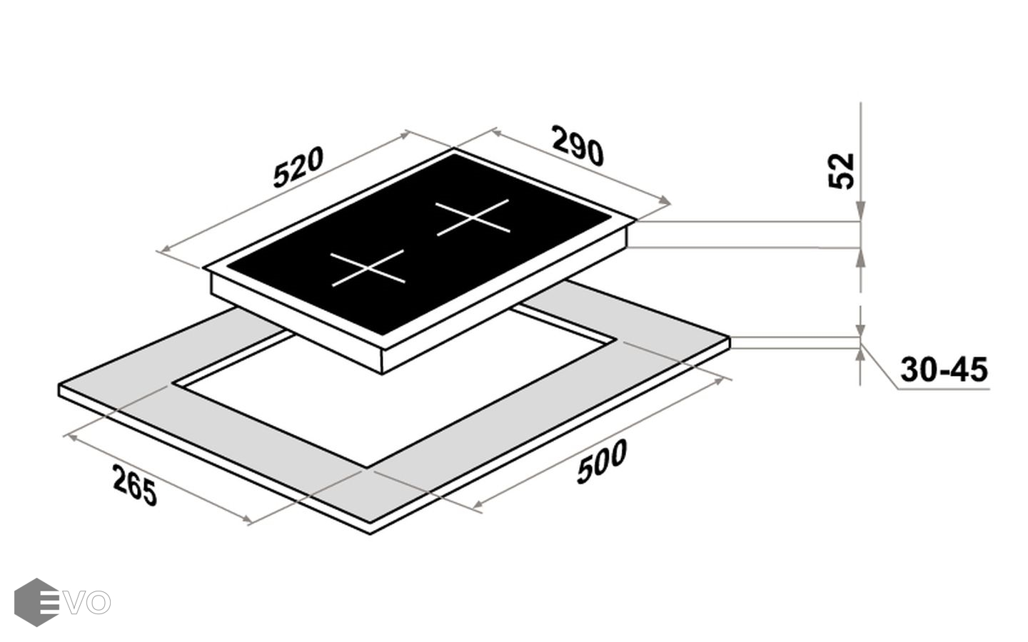 Размеры встраивания (ВхШхГ), мм: | 30х265х500 |