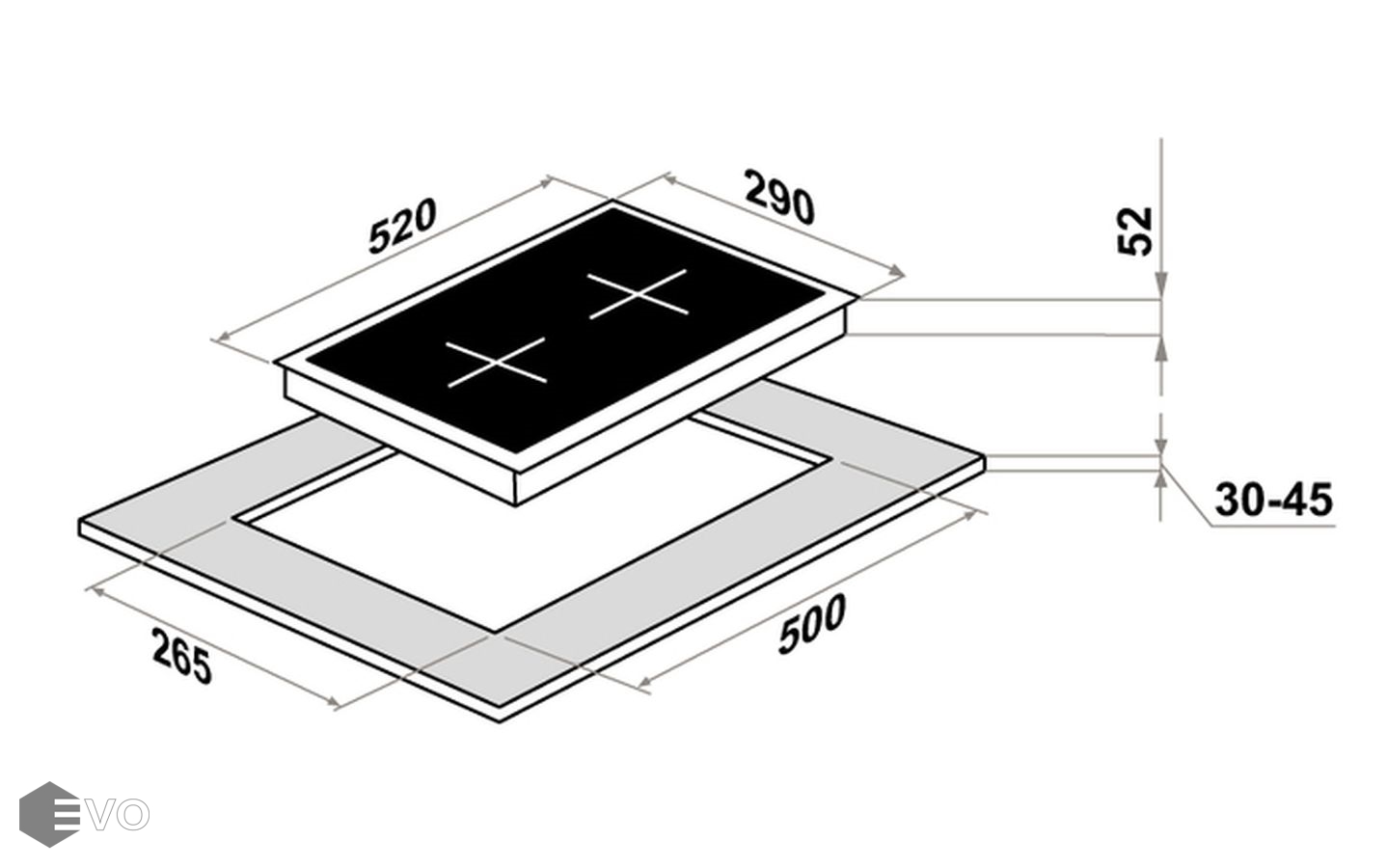 Размеры встраивания (ВхШхГ), мм: 30х265х500