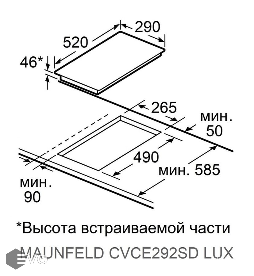 Размеры встраивания (ВхШхГ), мм: | 52х290х520 мм |