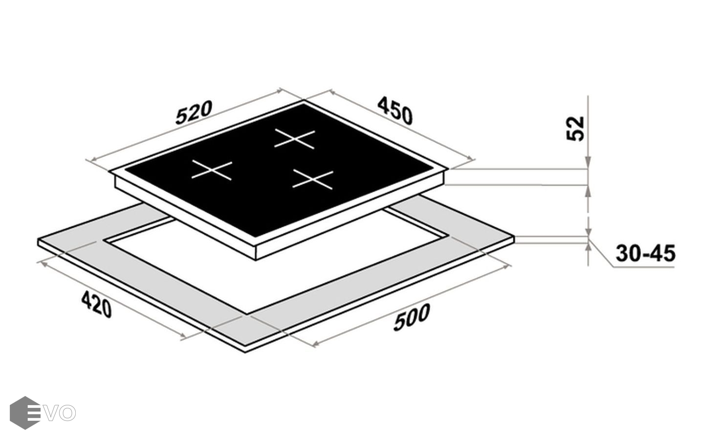 Размеры встраивания (ВхШхГ), мм: | 30х420х500 |