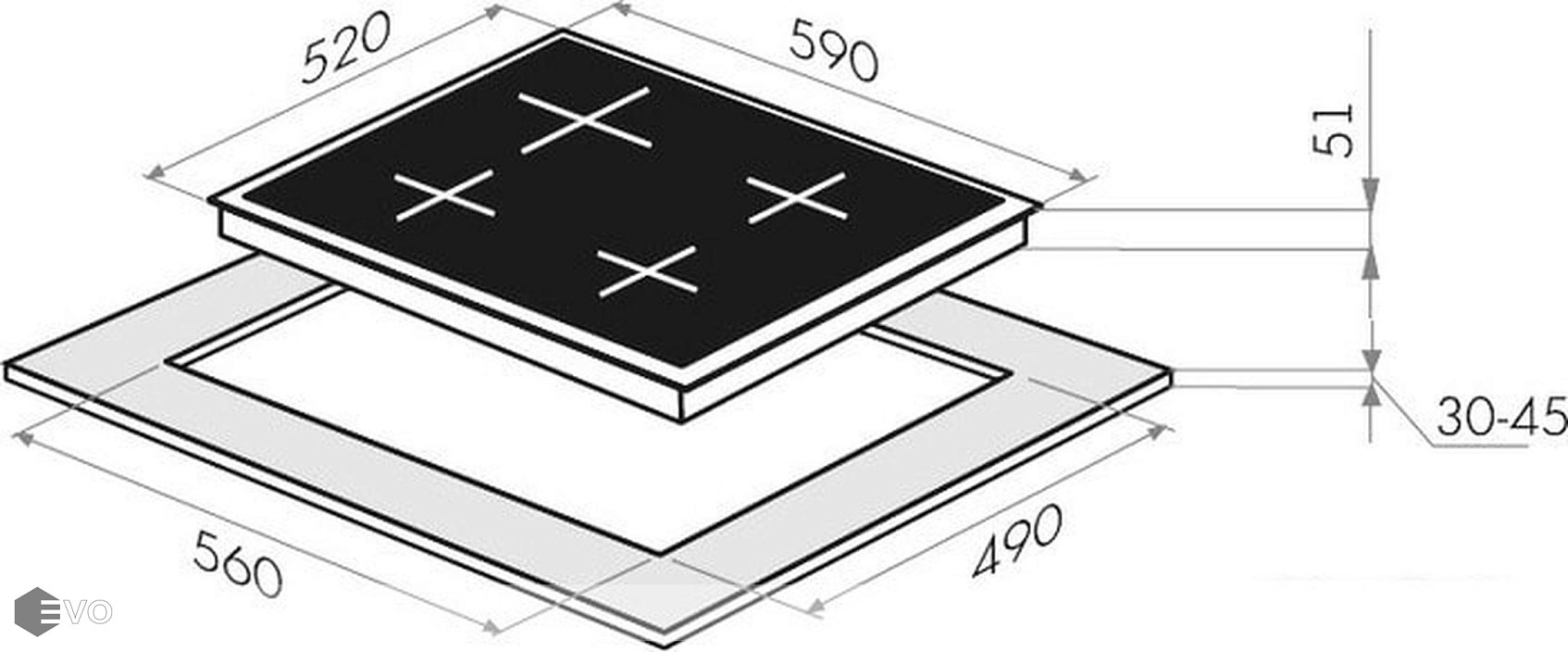 Размеры встраивания (ВхШхГ), мм: | 30х560х490 |