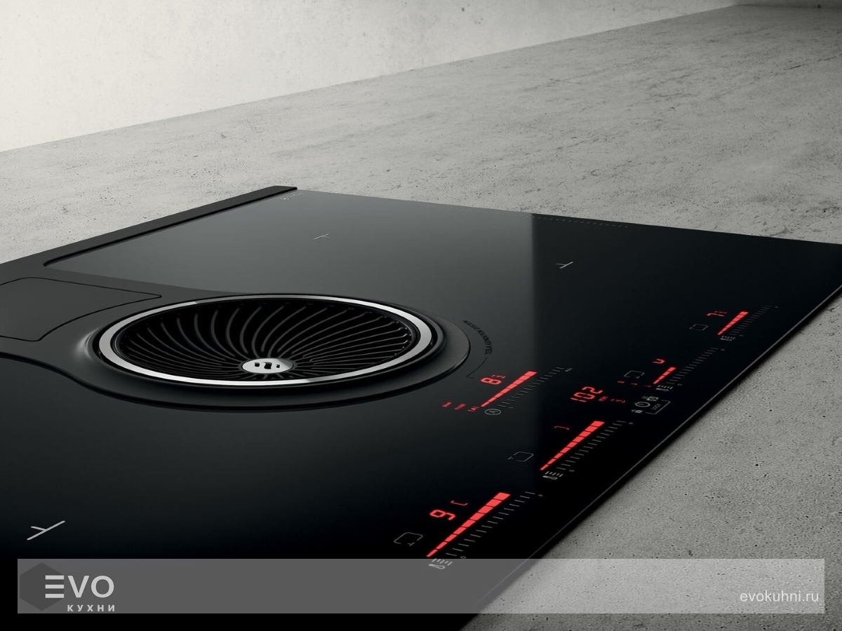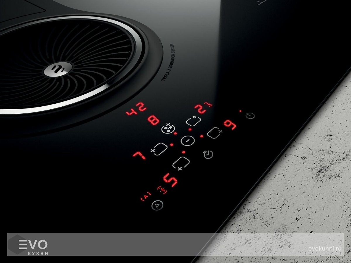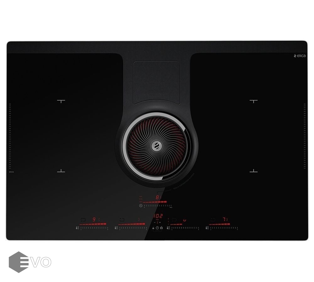 Революционная модель ELICA NIKOLATESLA HP BL/A/83 — индукционная варочная панель на 4 конфорки со встроенной мощной вытяжкой. Черная стеклокерамическая модель с фронтальной стороны дополнена панелью управления обоими устройствами.
