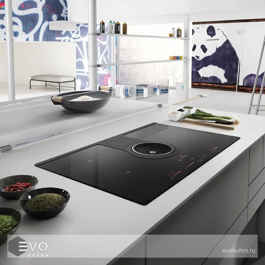 Девять ступеней нагрева обеспечивают необходимую интенсивность кипения. Вытяжной вентилятор с производительностью 1200 куб. м в час в режиме отвода мгновенно очищает воздух от пара, дыма и запахов, идущих от варочной поверхности. Функция Bridge позволяет объединять две зоны в одну для наиболее комфортного расположения крупных блюд. Функция Temperature Manager устанавливает поддерживает постоянную температуру.