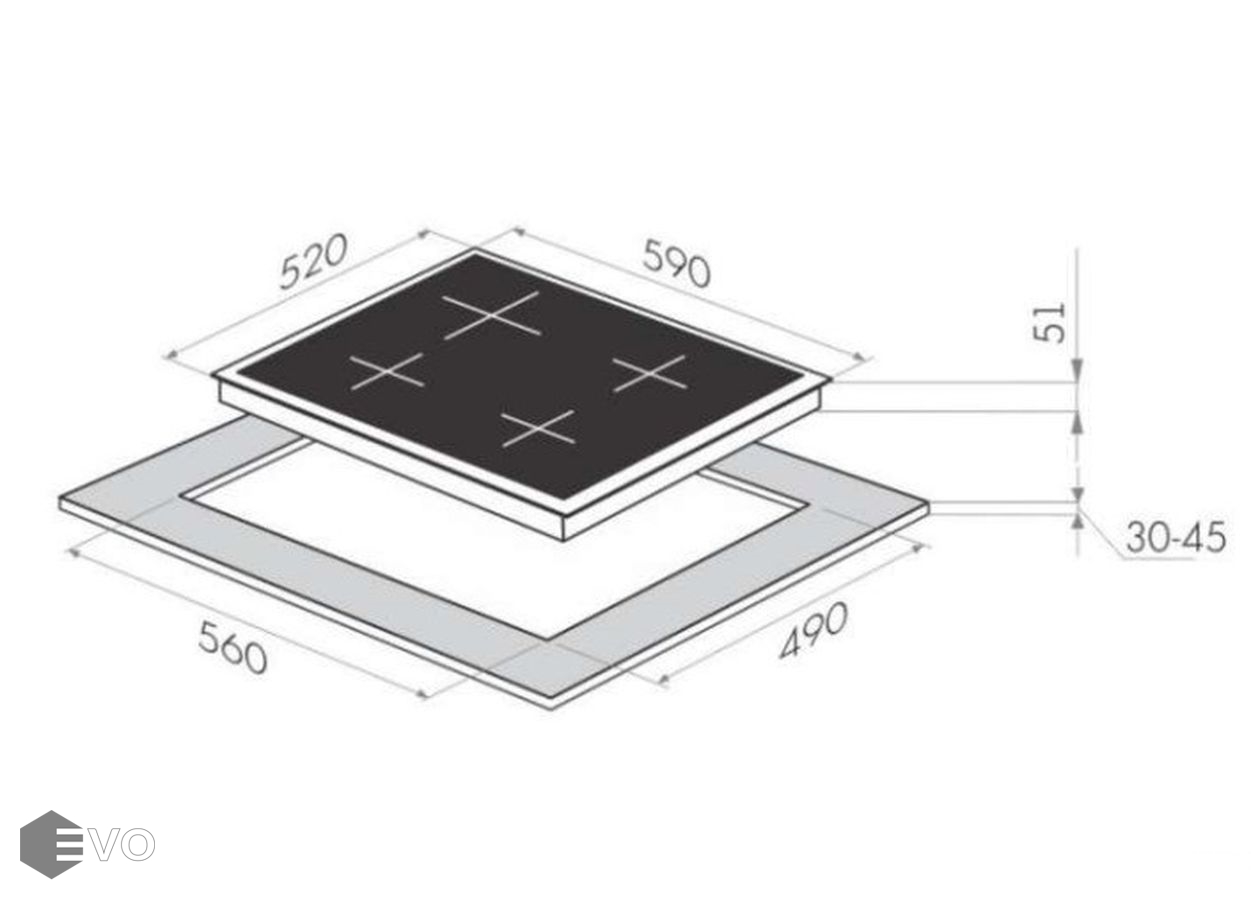 Размеры встраивания (ВхШхГ), мм: | 30х560х490 |