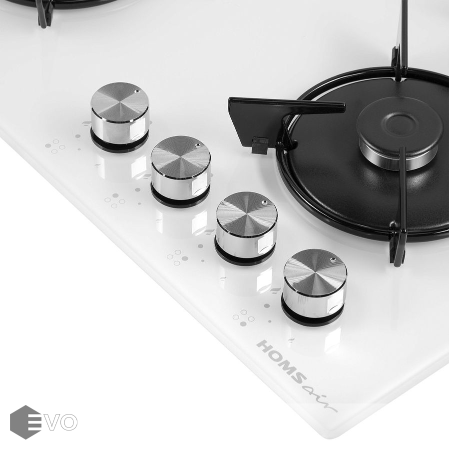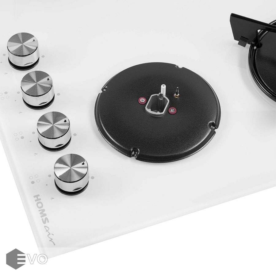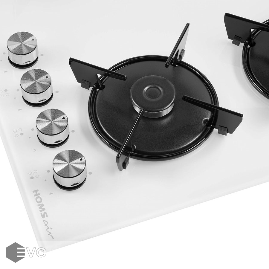 Встраиваемая газовая панель HOMSAir HGG641EWH – удобное, надёжное и безопасное в использовании устройство. Если по каким-то причинам пламя затухнет, система «Газ-контроль» прервёт подачу топлива и предотвратит утечку.