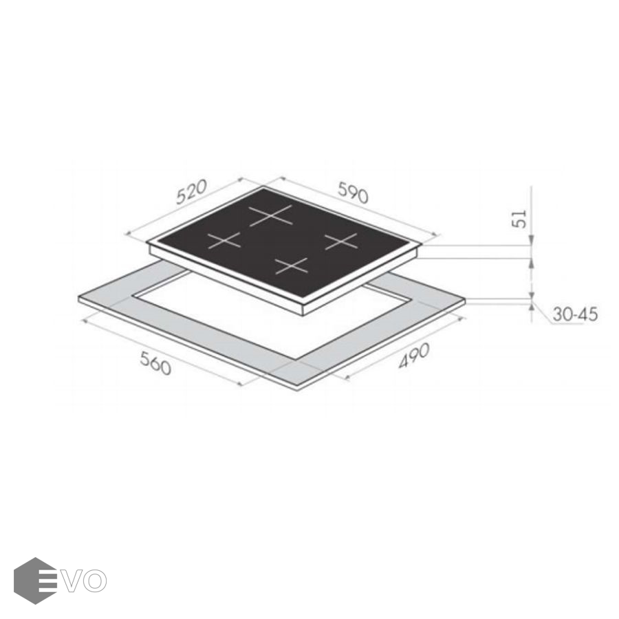 | Размеры встраивания (ВхШхГ), мм: | 30х560х490 |