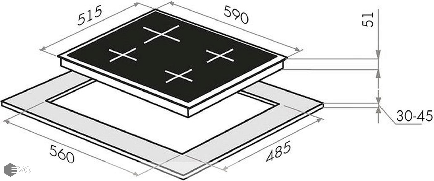 Размеры встраивания (ВхШхГ), мм: | 30х560х490 |