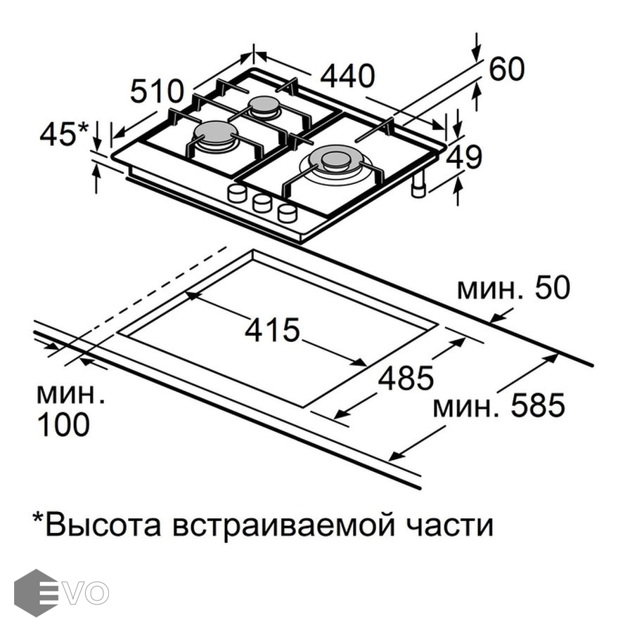 Размеры встраивания (ВхШхГ), мм: | 105х440х510 мм |