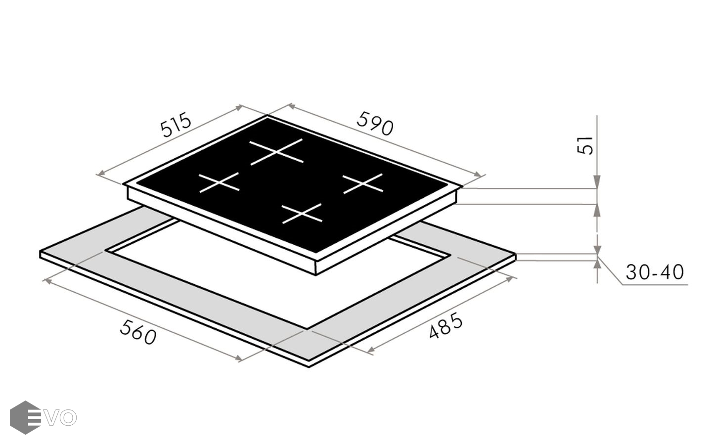 Размеры встраивания (ВхШхГ), мм: | 30х560х485 |