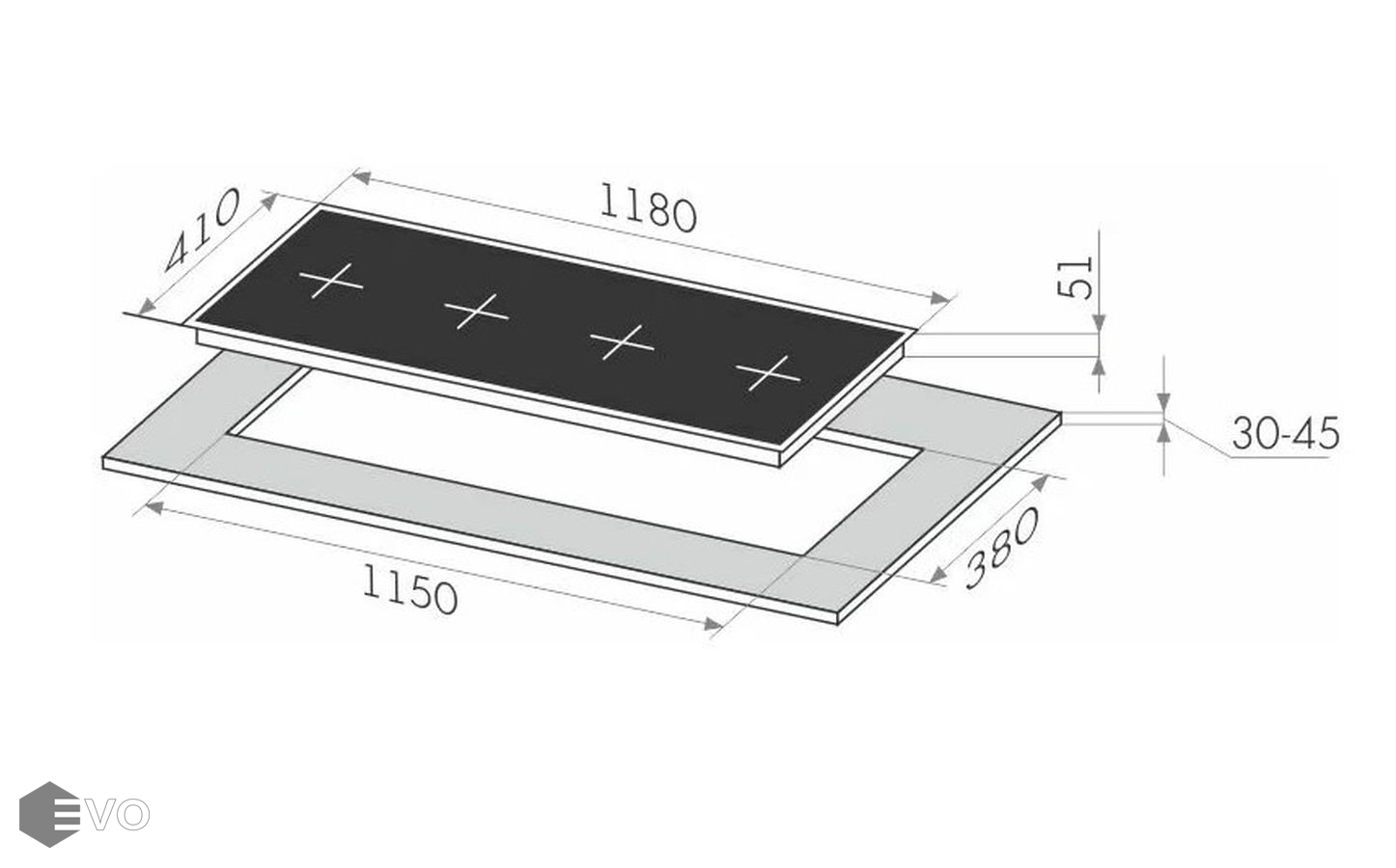 Размеры встраивания (ВхШхГ), мм: | 30х1150х380 |
