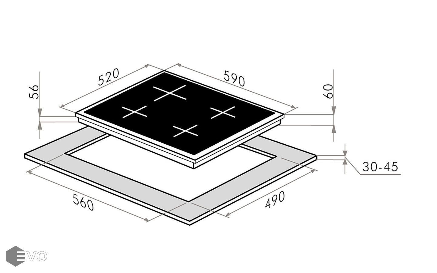 | Размеры встраивания (ВхШхГ), мм: | 30х560х490 |