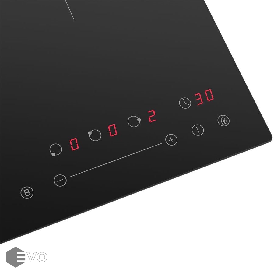 Функции: Индукционные конфорки Таймер конфорок Блокировка панели управления Защитное отключение конфорок Индикатор остаточного тепла