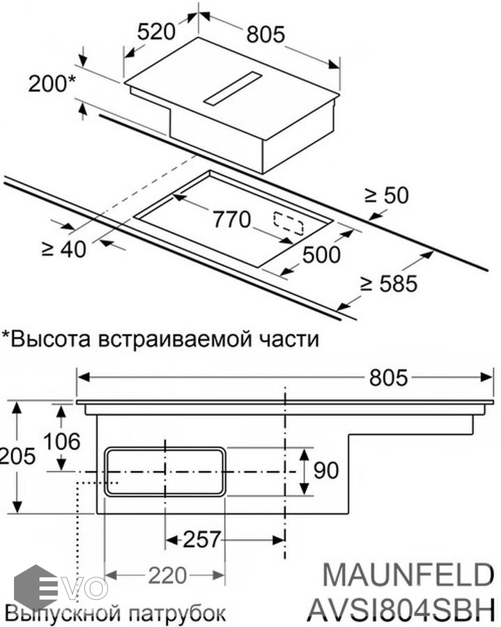 Варочная панель MAUNFELD AVSI804SBH индукционная с интегрированной вытяжкой
