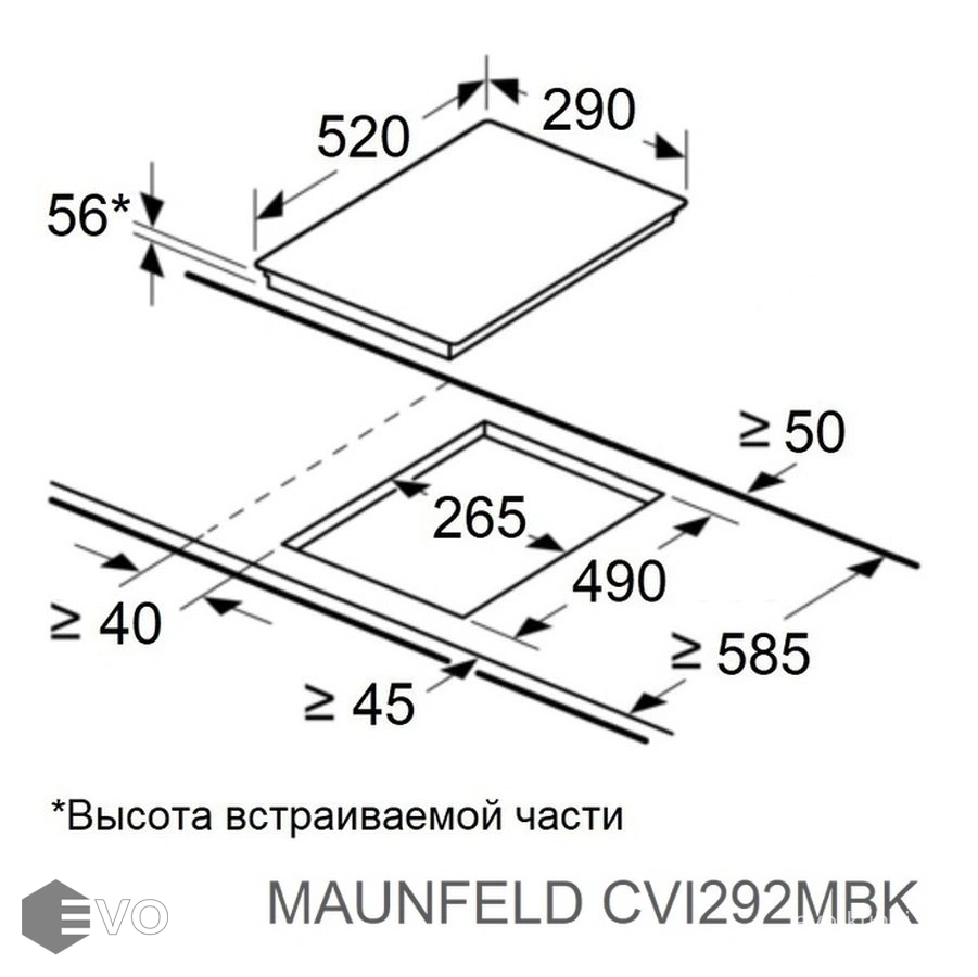 Размеры встраивания (ВхШхГ), мм: 50х265х490