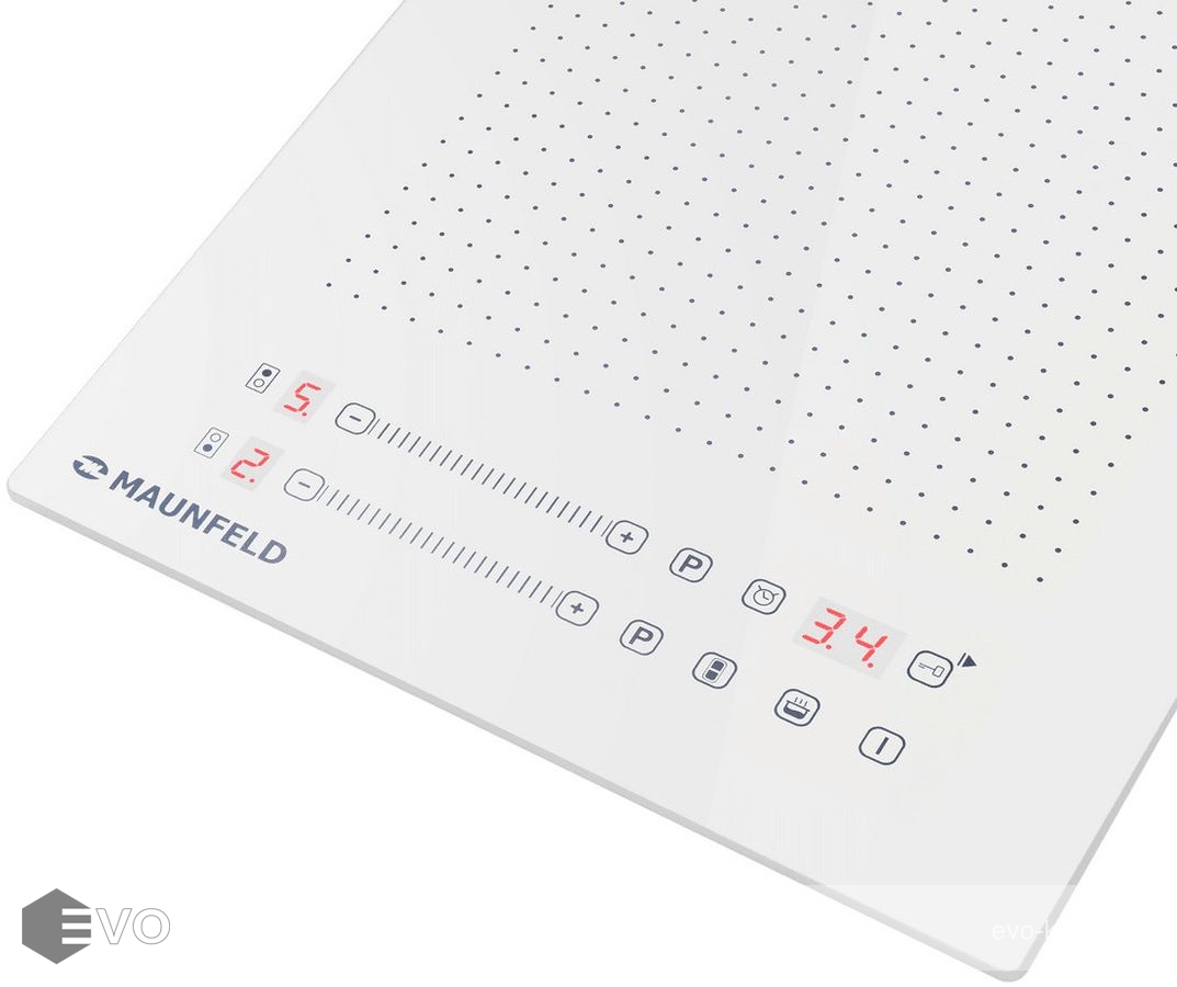 Индукционная варочная панель Maunfeld CVI292S2FWH представлена в белом цвете и оснащена функцией Booster, которая активирует максимальный нагрев, если нужно быстро вскипятить воду. Индикатор остаточного тепла показывает какая зона нагрева все еще горячая. В случае перегрева устройства сработает защитное отключение.