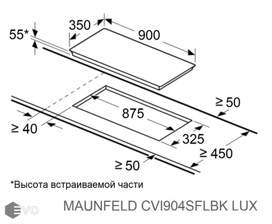 Размеры встраивания (ВхШхГ), мм: 60х900х350 мм
