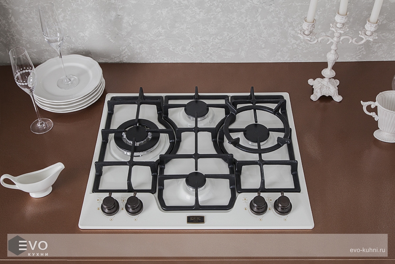 - Цвет поворотных переключателей конфорок: темная бронза