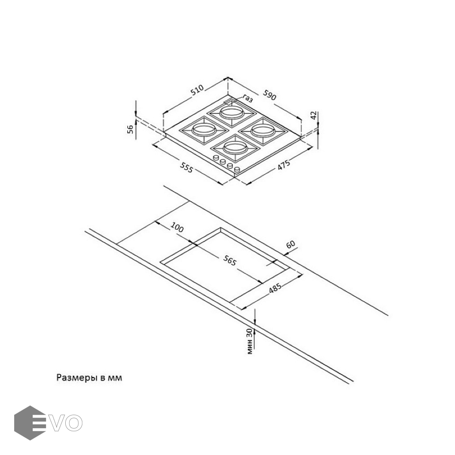 • Цвет поворотных переключателей конфорок: нержавеющая сталь
