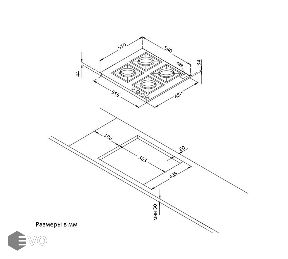 • Тип: газовая варочная поверхность