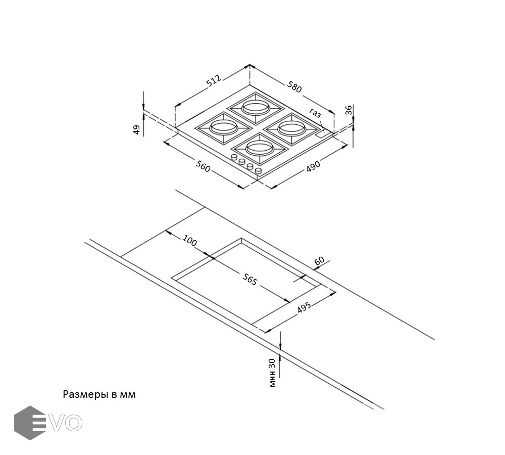 - Габариты (ВхШхГ), мм: 49х580х512