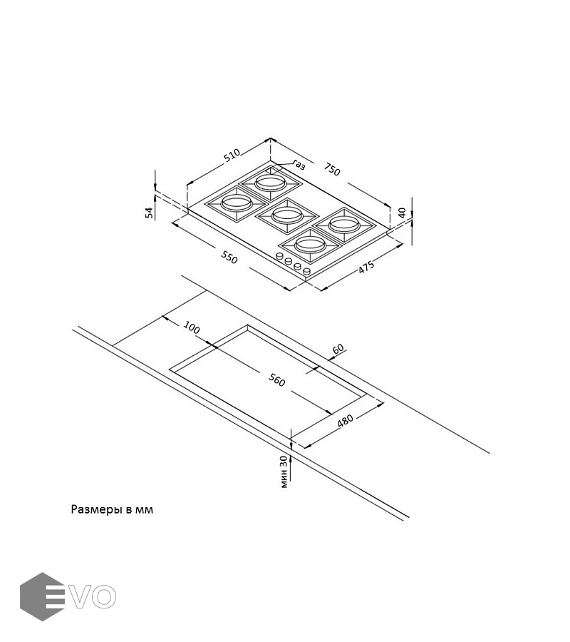 | Размеры встраивания (ВхШхГ), мм: | 30x560х480 |