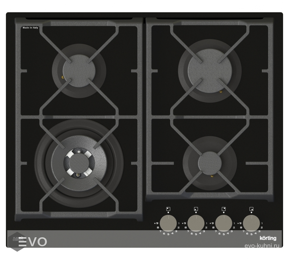 - Цвет поворотных переключателей конфорок: нержавеющая сталь