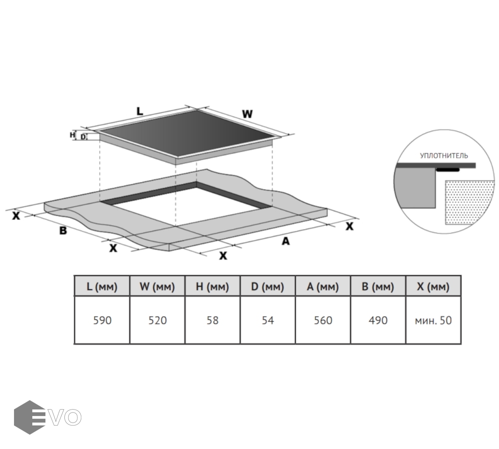 Размеры встраивания (ВхШхГ), мм: | 30x560х490 |