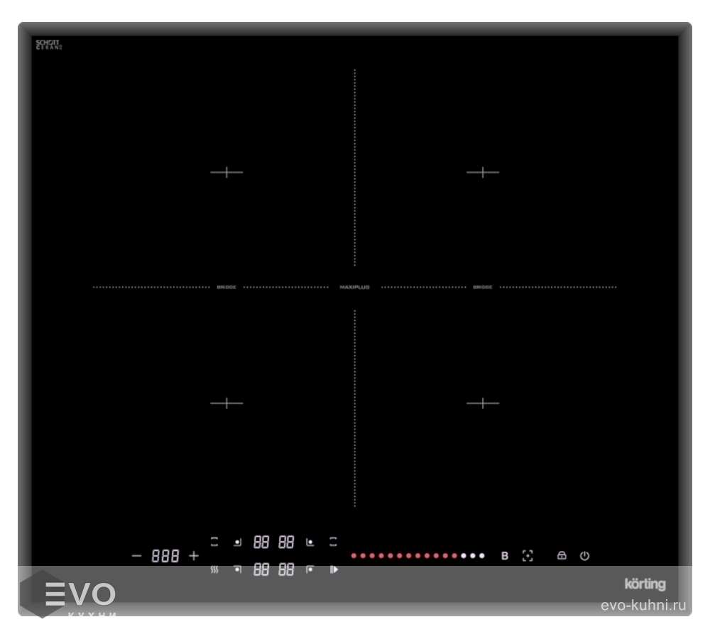 Индукционная варочная поверхность Korting HIB 64940 B Maxi — панель выполнена из черной стеклокерамики и оснащена сенсорным управлением. 4 стандартных конфорки, а также функции объедения зон Bridge и MaxiPlus создают неограниченные возможности для приготовления пищи. При использовании функции «Stop&Go» модель запоминает все рабочие настройки и переводит их в режим поддержания тепла, позволяет поставить процесс приготовления на паузу. Специальная функция «Smart Zone» будет автоматически определять, куда поставили посуду.