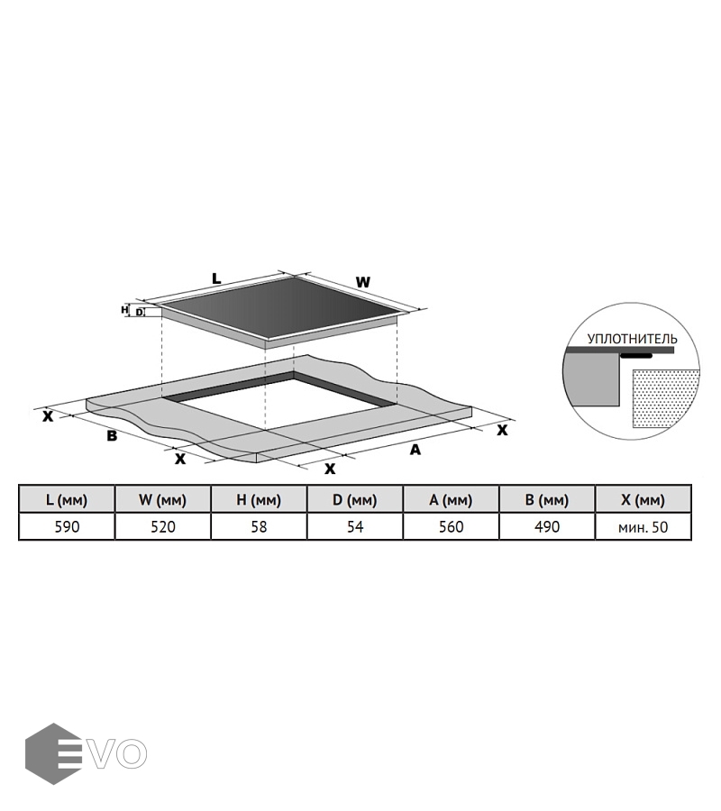 Размеры встраивания (ВхШхГ), мм: | 30x560х490 |