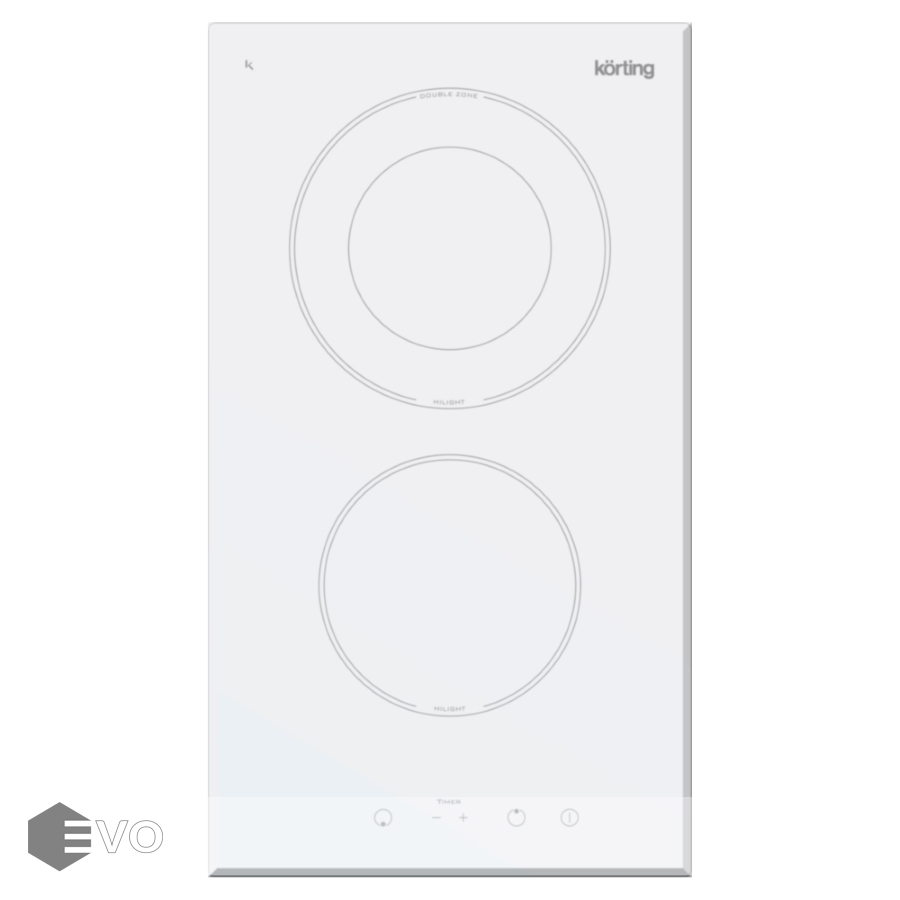 Электрическая HiLight варочная панель Korting HK 32033 BW — в этих конфорках в качестве нагревательного элемента применяется уложенная змейкой лента из высокоомного сплава, конфорка достигает установленной рабочей температуры буквально за считанные секунды, позволяет плавно регулировать мощность, излучаемое тепло очень равномерно распределяется по всей рабочей зоне.