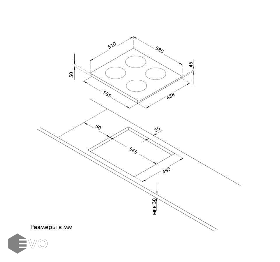 | Размеры встраивания (ВхШхГ), мм: | 30x565х495 |