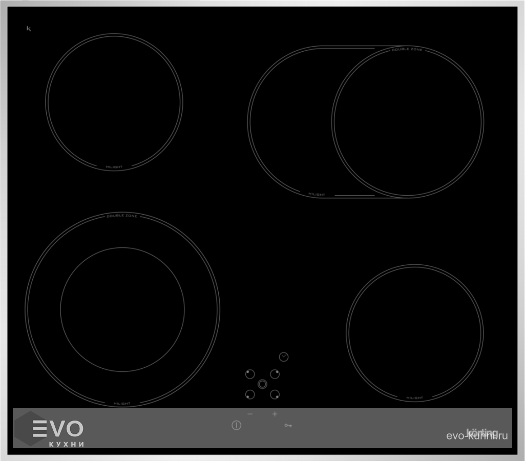 | Функции: | Индукционные конфорки Блокировка панели управления Защитное отключение конфорок Индикатор остаточного тепла Контурная конфорка Овальная зона нагрева Рамка |