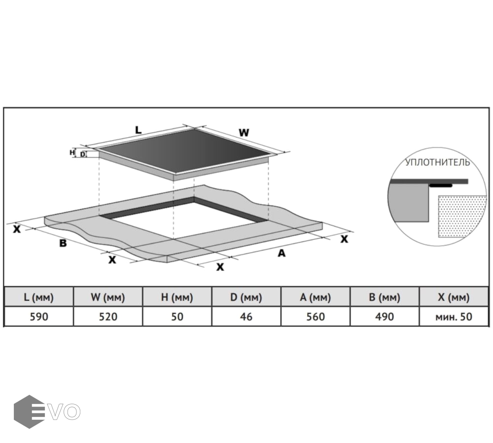 Размеры встраивания (ВхШхГ), мм: | 30x560х490 |