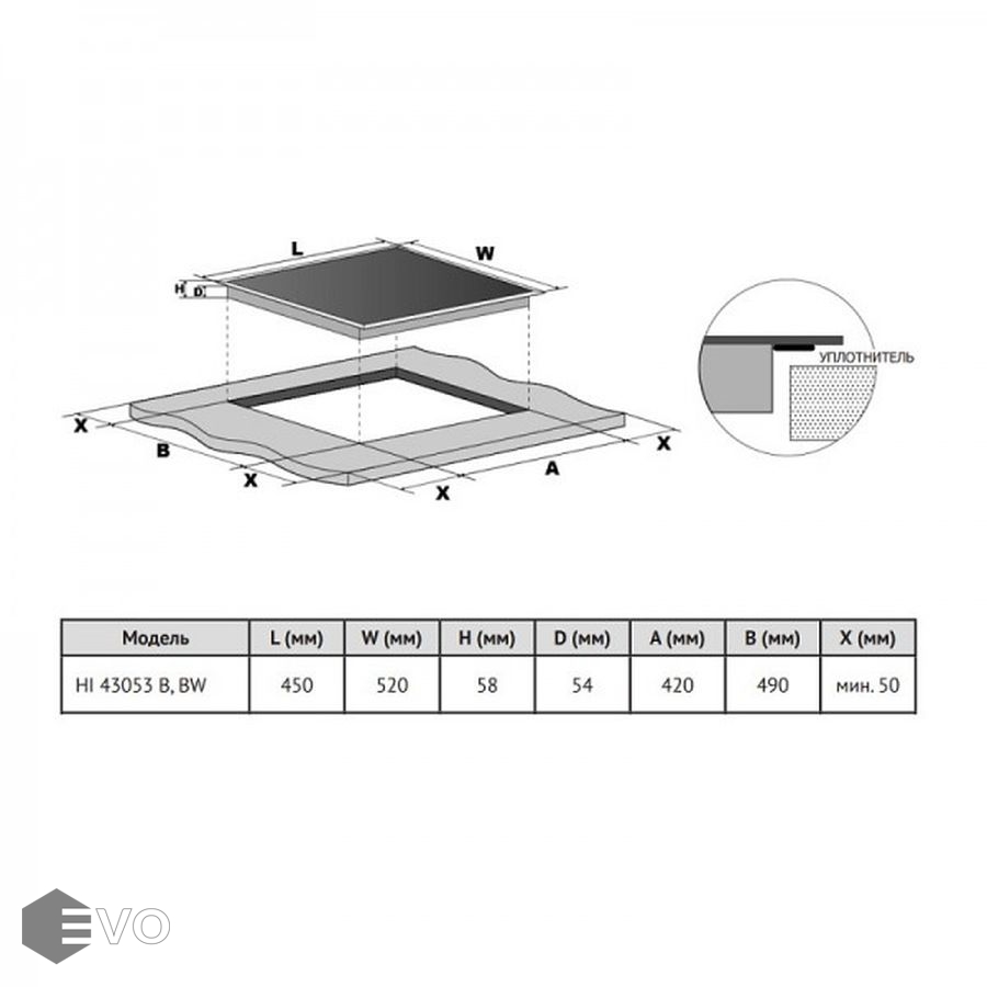 | Размеры встраивания (ВхШхГ), мм: | 54x420x490 |