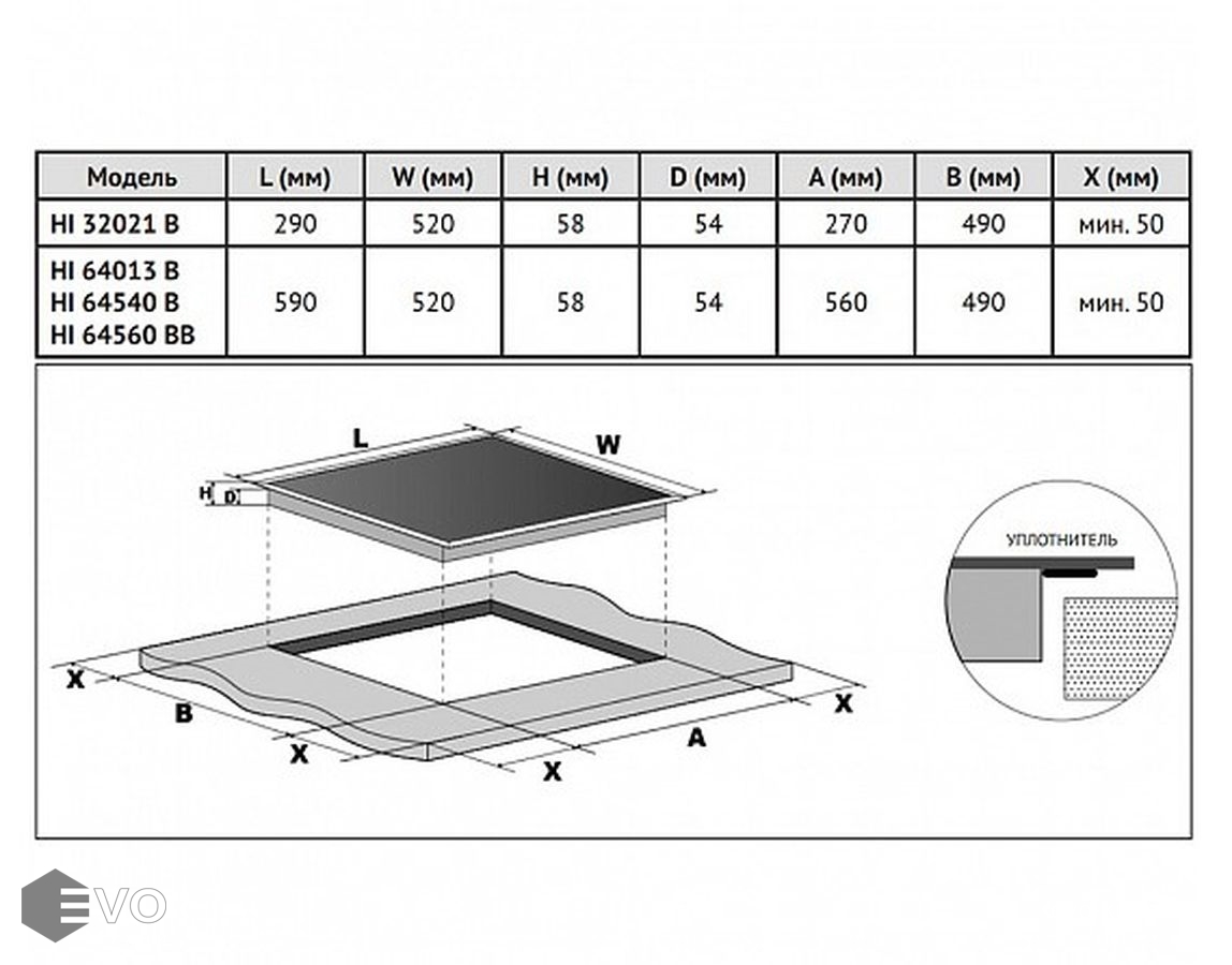 Размеры встраивания (ВхШхГ), мм: | 30x560x490 |