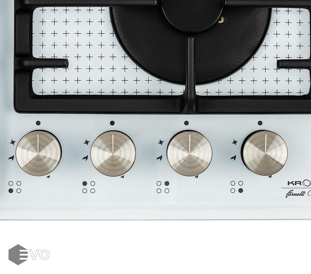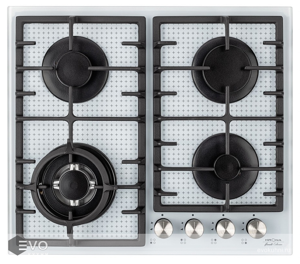 Газовая варочная поверхность KRONA ARDORE 60 WH - модель представлена в черном и белом цветах шириной встраивания 60 см. Варочная поверхность изготовлена из термостойкого стекла толщиной 8 мм с двумя чугунными устойчивыми решетками. В модели предусмотрена экспресс-конфорка с тройным пламенем и адаптер для посуды со сферическим дном, жиклеры для сжиженного газа, адаптер для WOK–посуды.