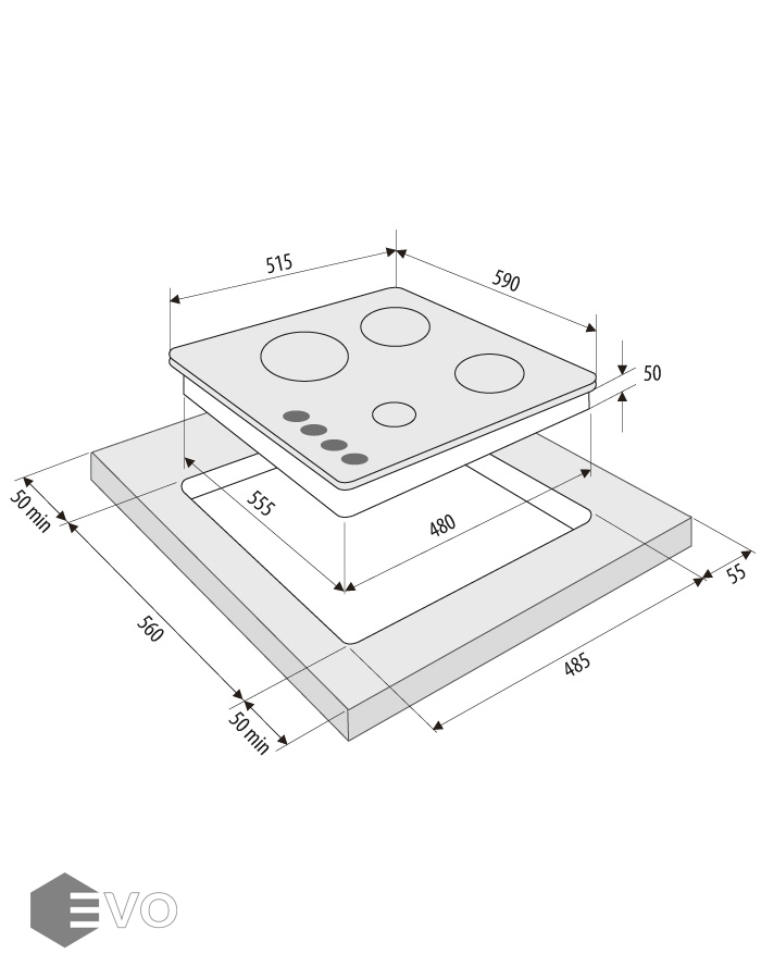 • Встраиваемая часть (ВхШхГ), мм: 50х555х480