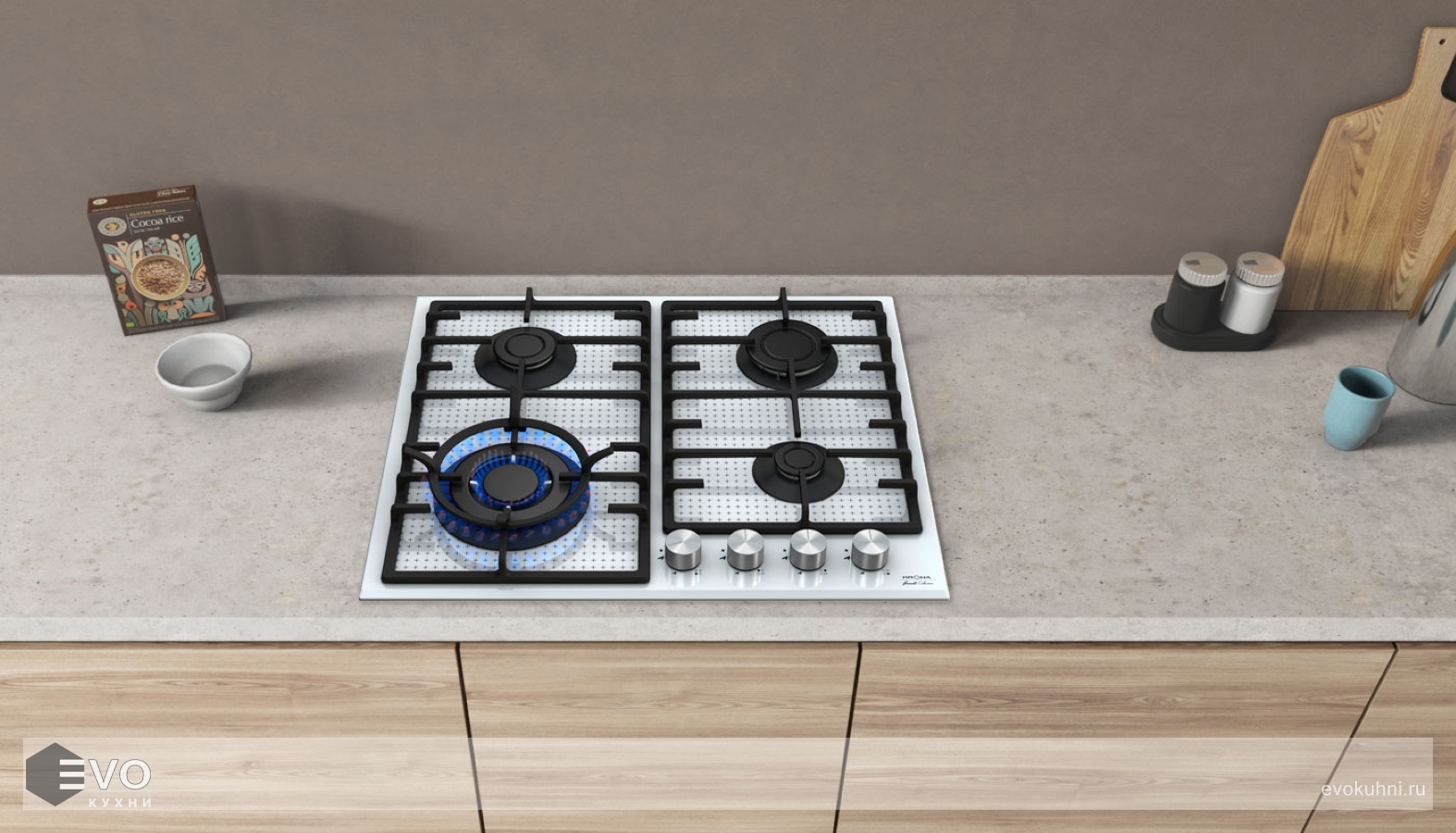 • Цвет поворотных переключателей конфорок: нержавеющая сталь