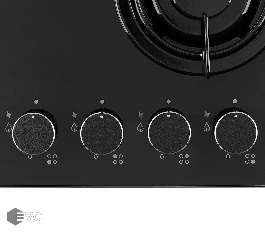 • Цвет поворотных переключателей конфорок: черный