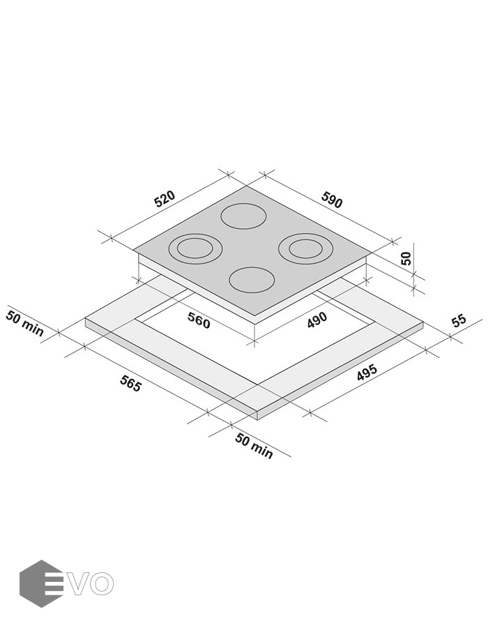 • Встраиваемая часть (ВхШхГ), мм: 50х560х490